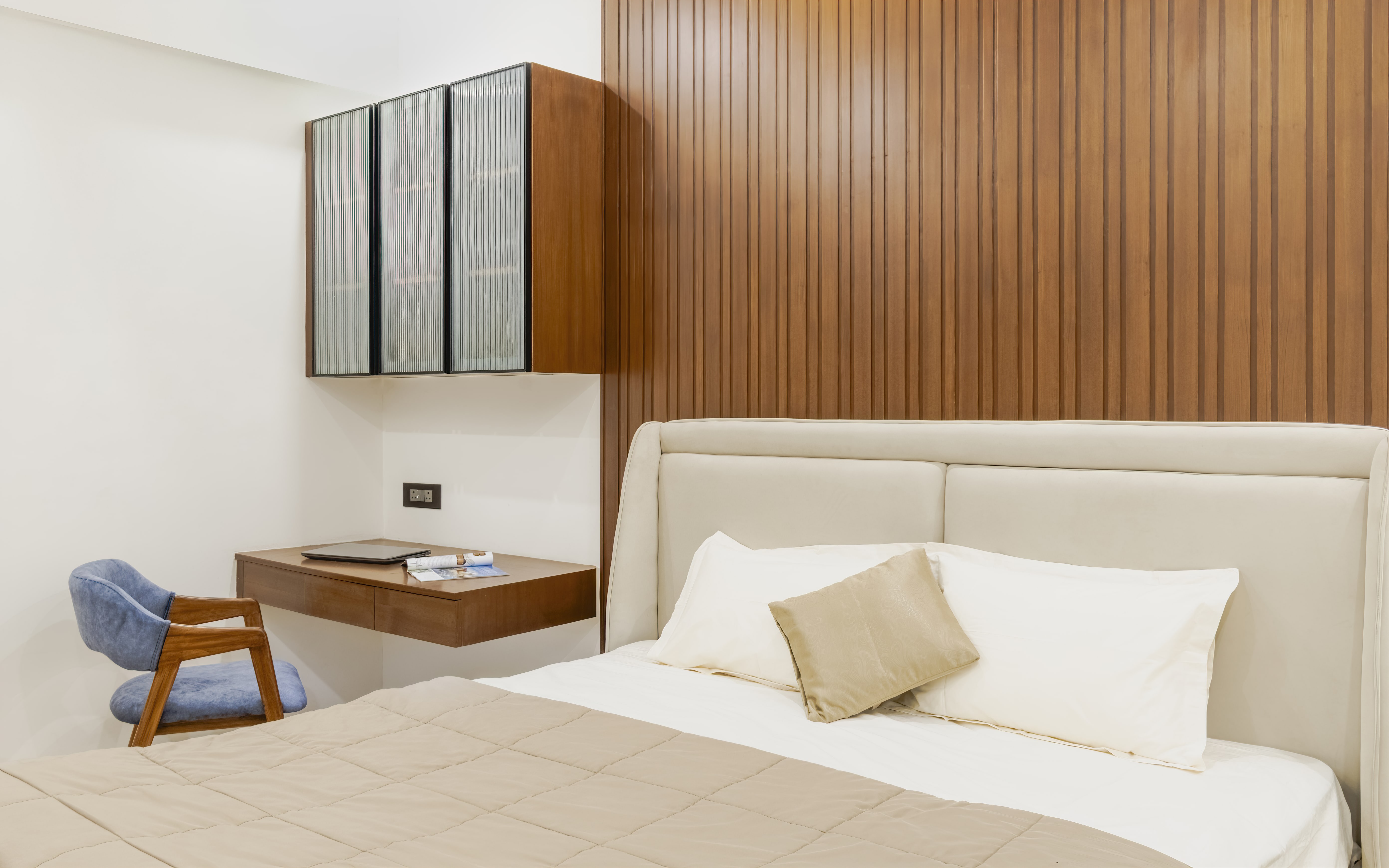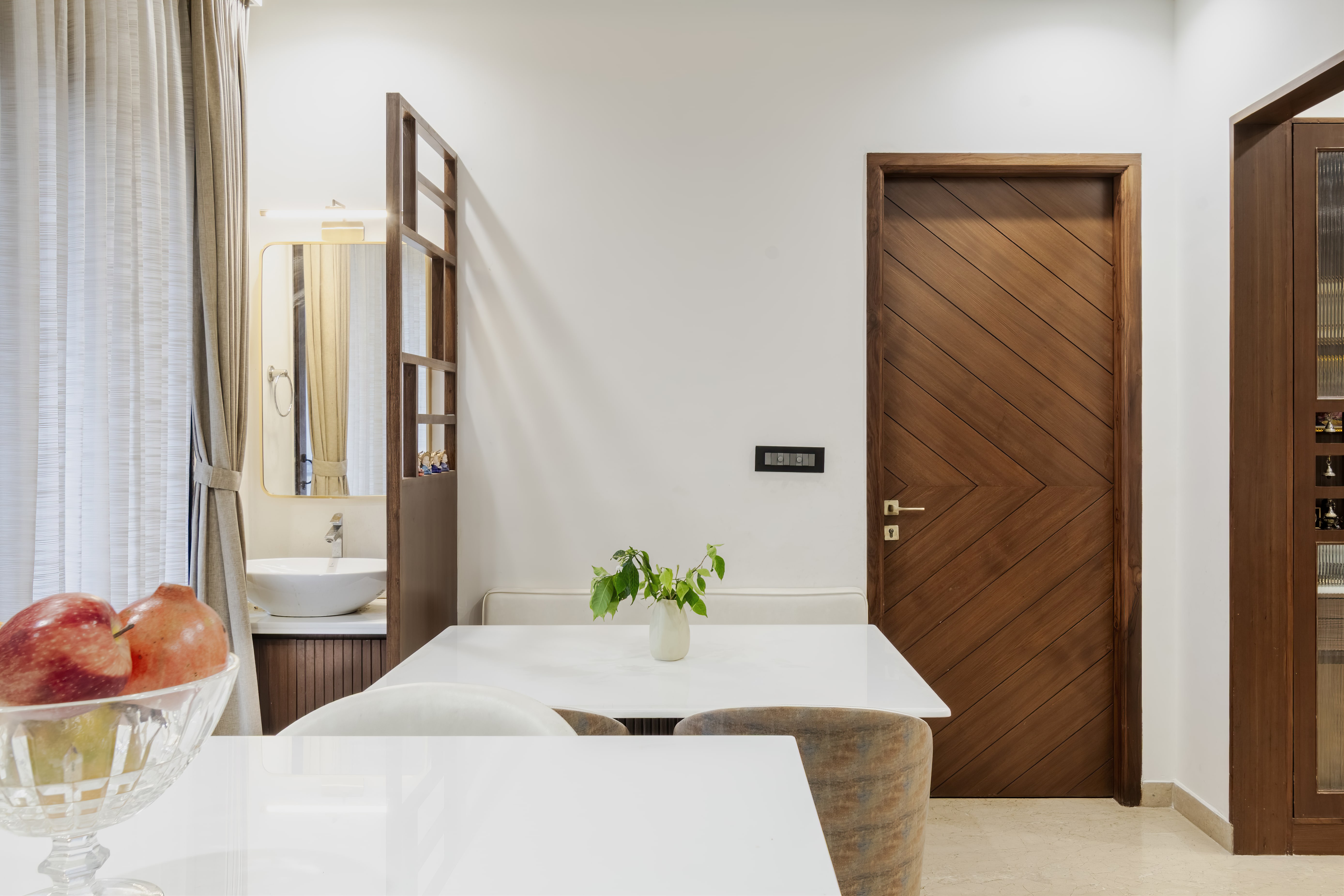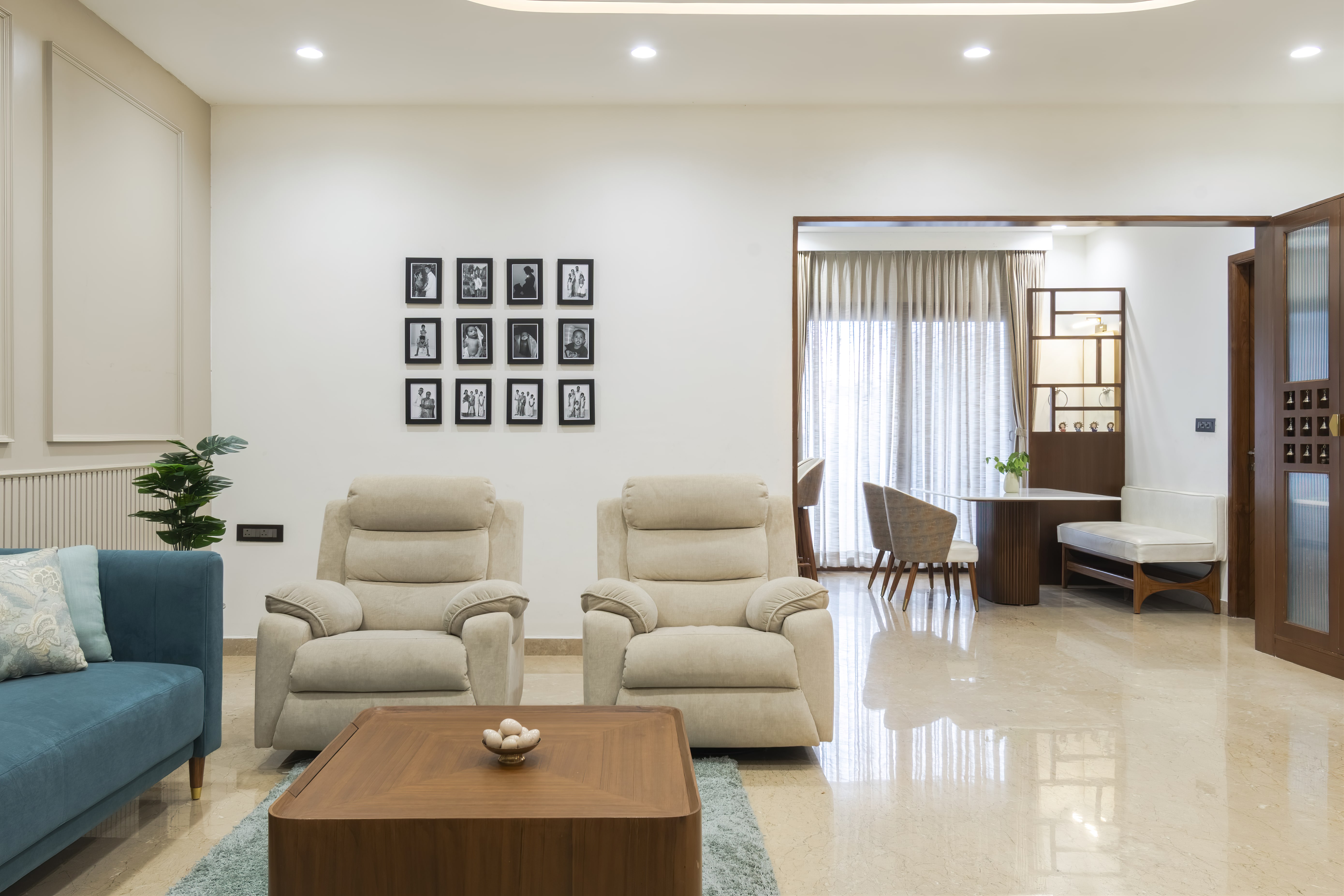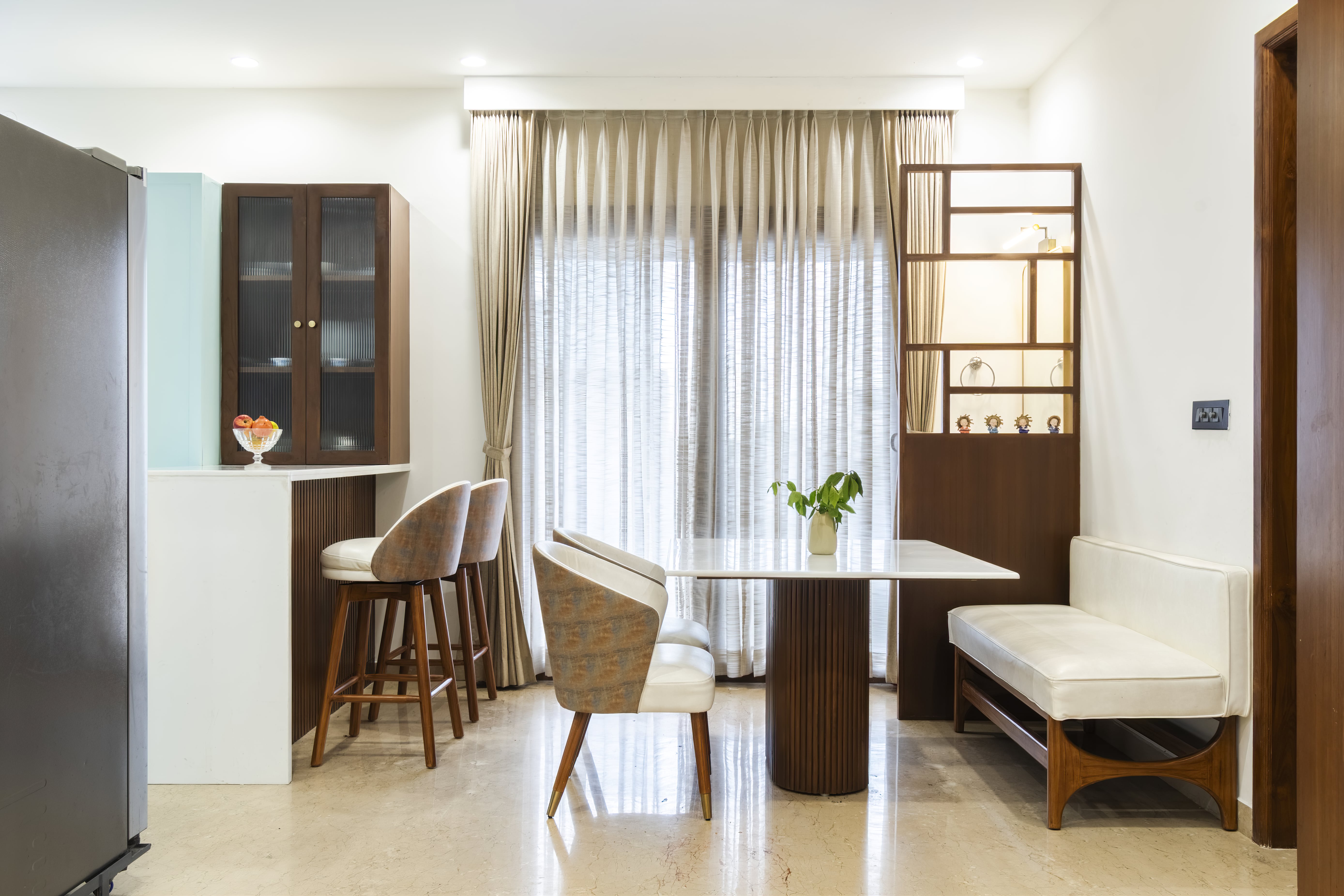 This contemporary residence where sleek sophistication meets effortless comfort. As you enter, you’re greeted by an open concept living space bathed in natural light. The color palette is a serene mix of neutral tones—crisp whites, and warm beiges—punctuated by occasional splashes of bold accent colors to add vibrancy and personality.The living area features minimalist furniture with clean lines and low profiles, creating a sense of openness and fluidity. The space is anchored by a modern area rug with a geometric pattern that complements the overall design.The dining area, seamlessly integrated into the living space, features a contemporary table with a Nano white top and printed fabric chairs. The bedrooms continue the theme of modern elegance with minimalist decor, luxurious textiles, and an emphasis on comfort. And carefully chosen artwork add personality and convenience, ensuring that every detail contributes to a harmonious and modern living experience.