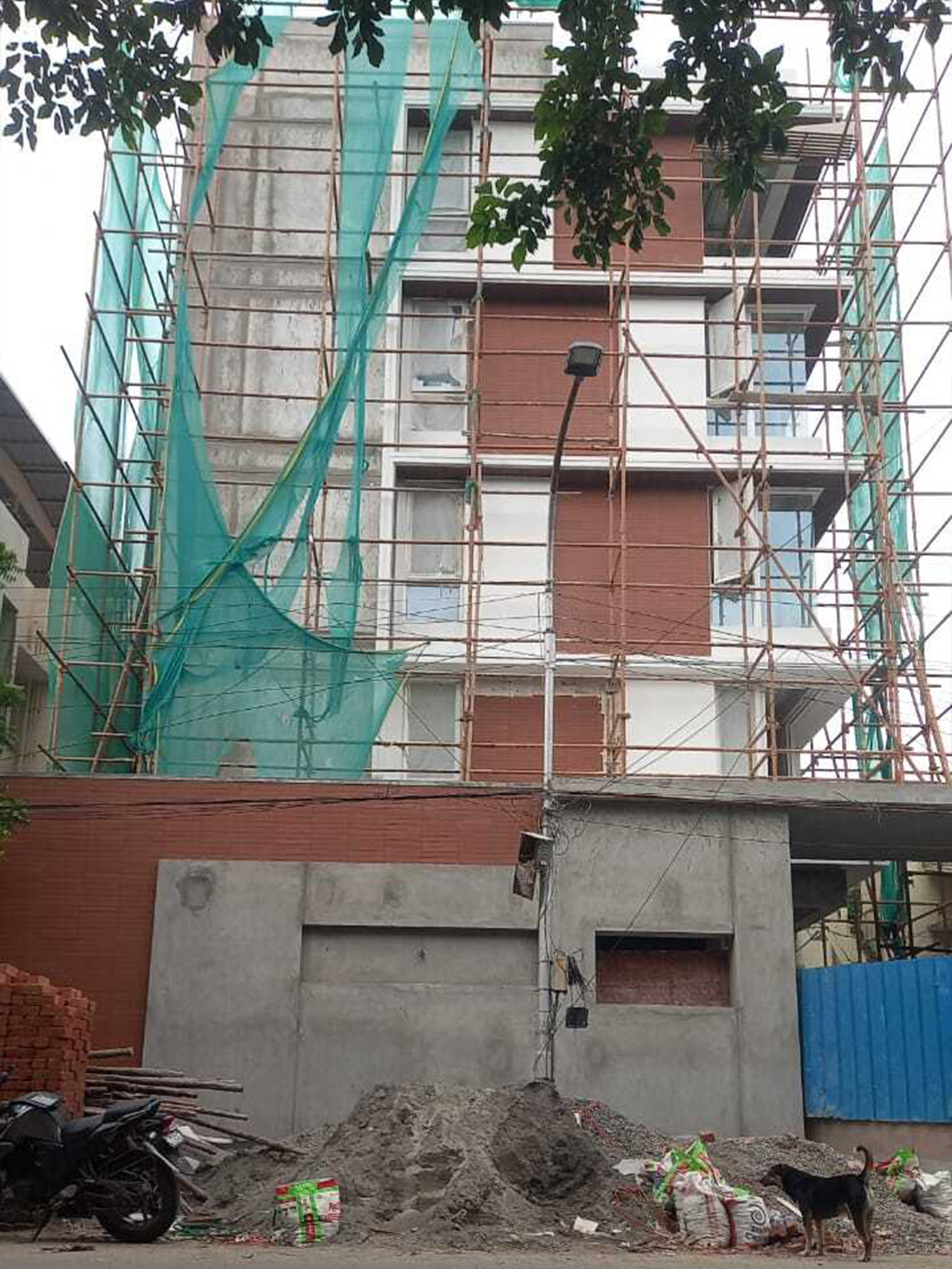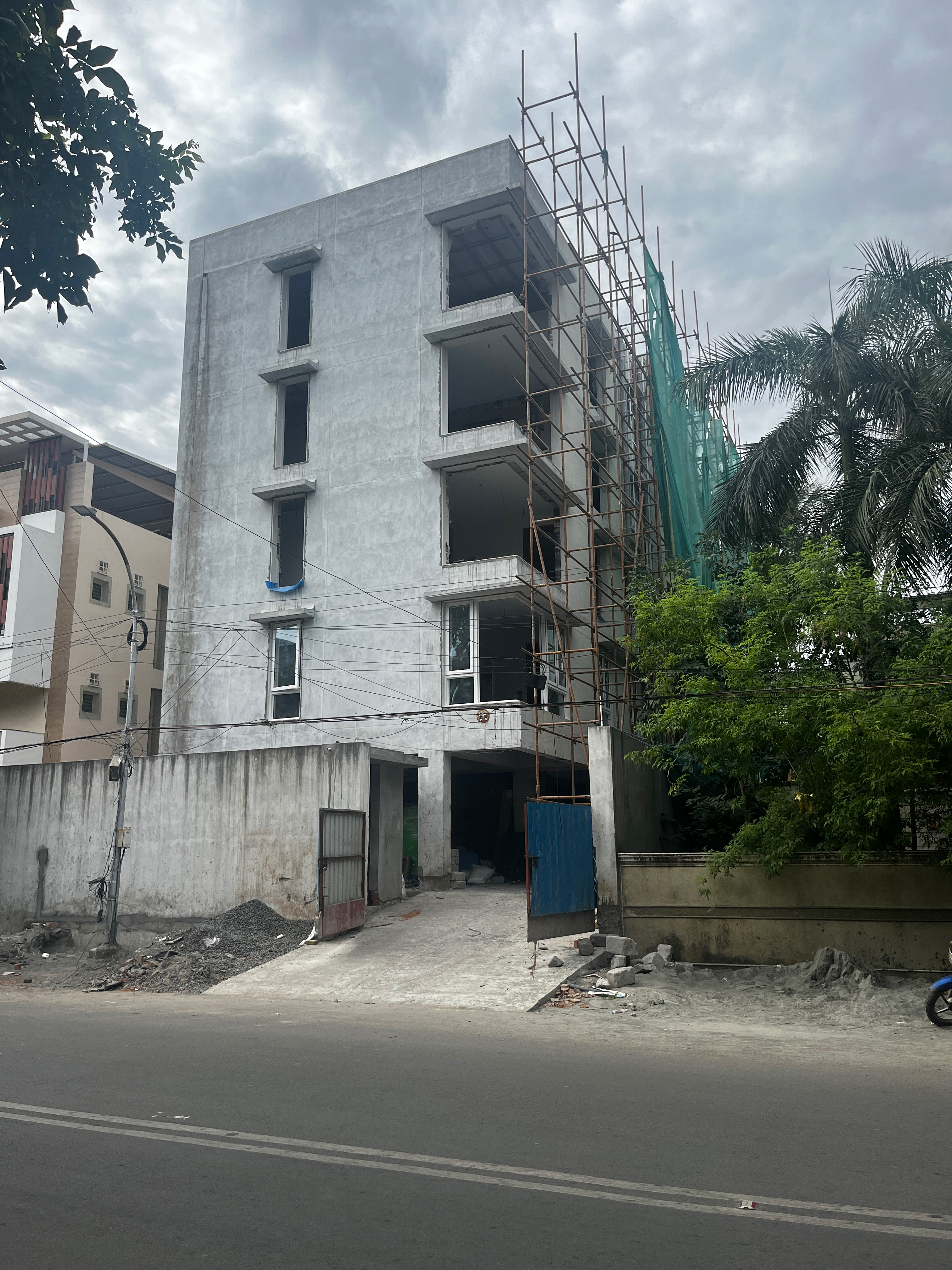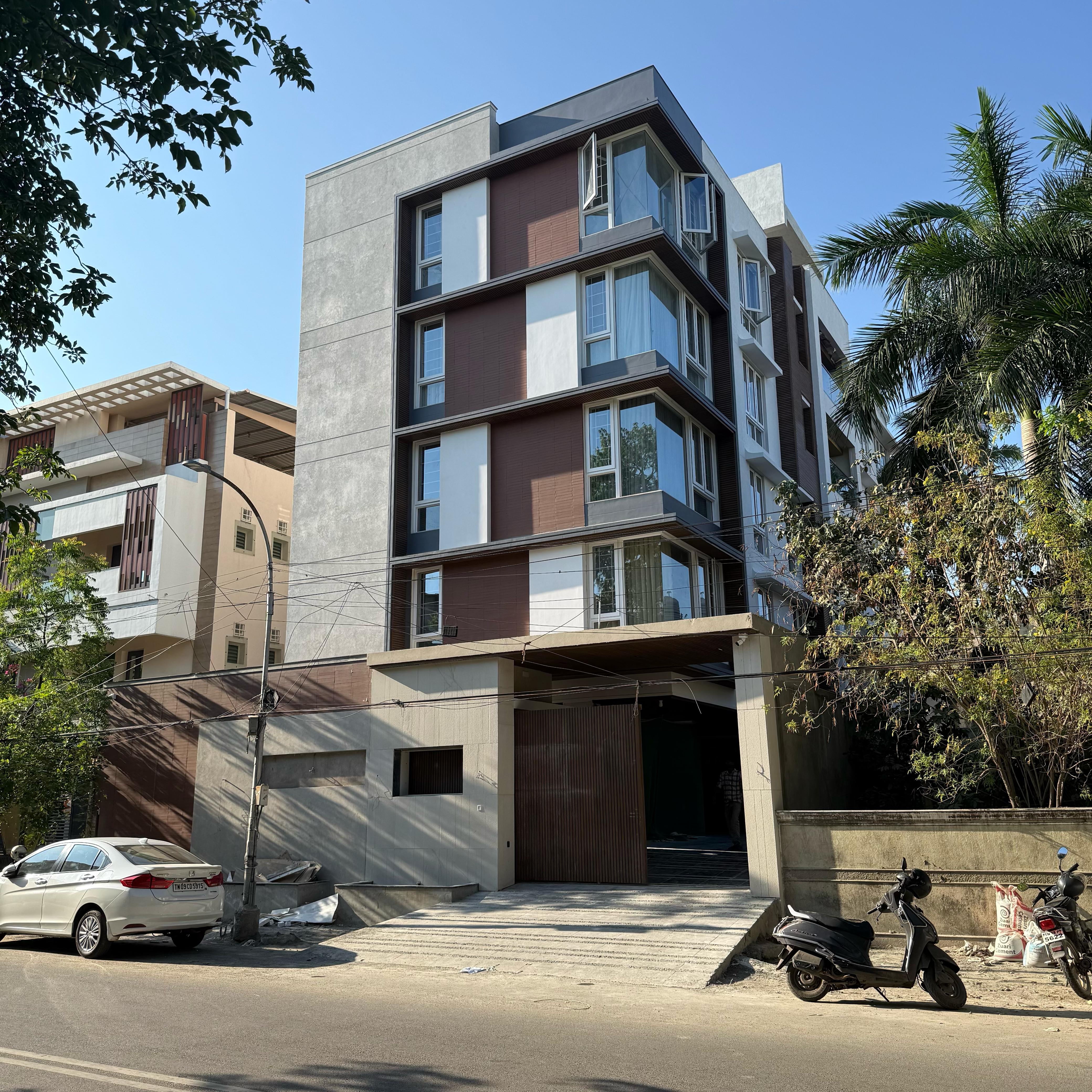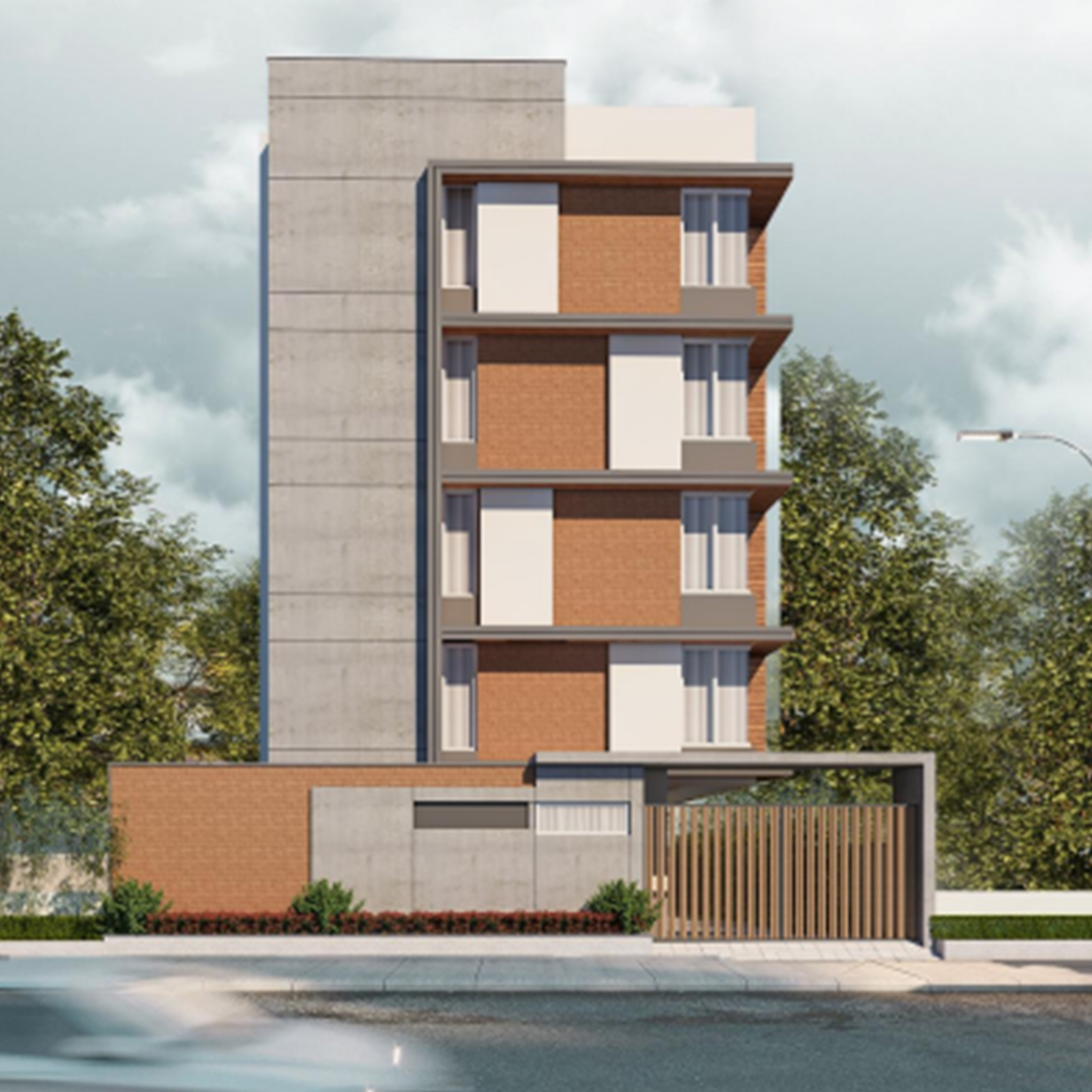 The client required a stilt that accommodates car parking, drivers room and pet rooms. The remaining floors connected with common staircase has a 2bhk apartment.