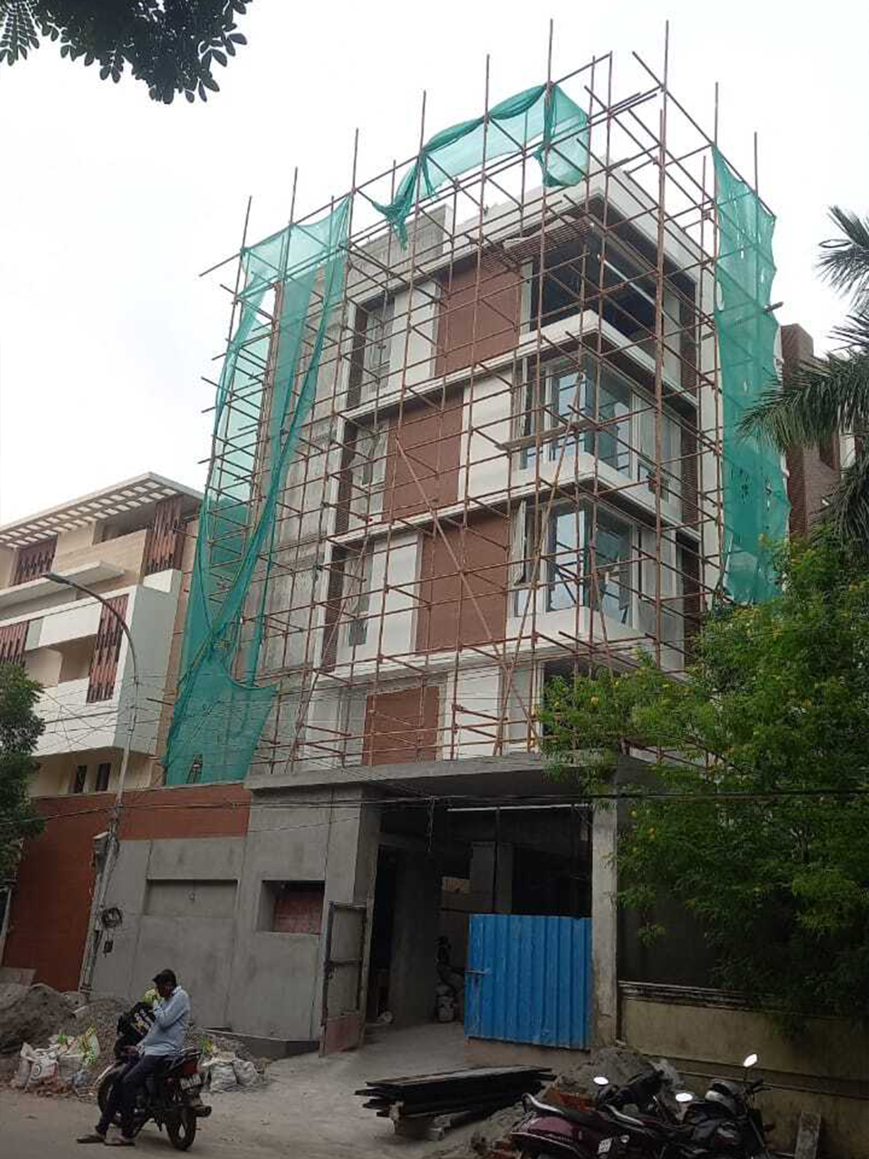 This Stilt+4 residence located on the prime location of Anna nagar elevation cladded with brick and stone is executed to perfection and the interiors are designed in contemporary style as envisioned by our architect.