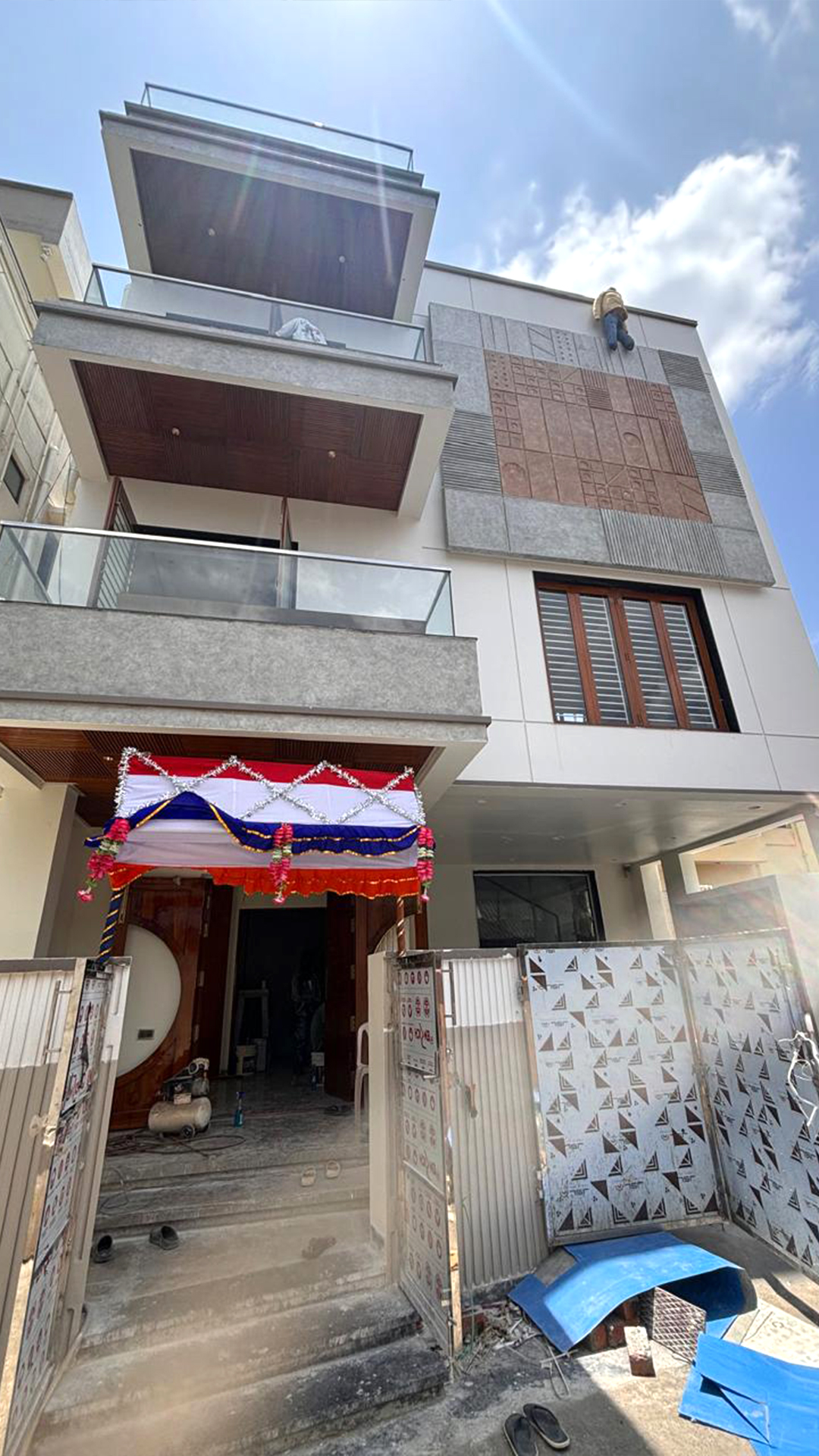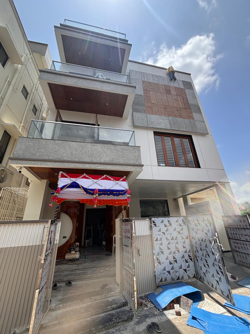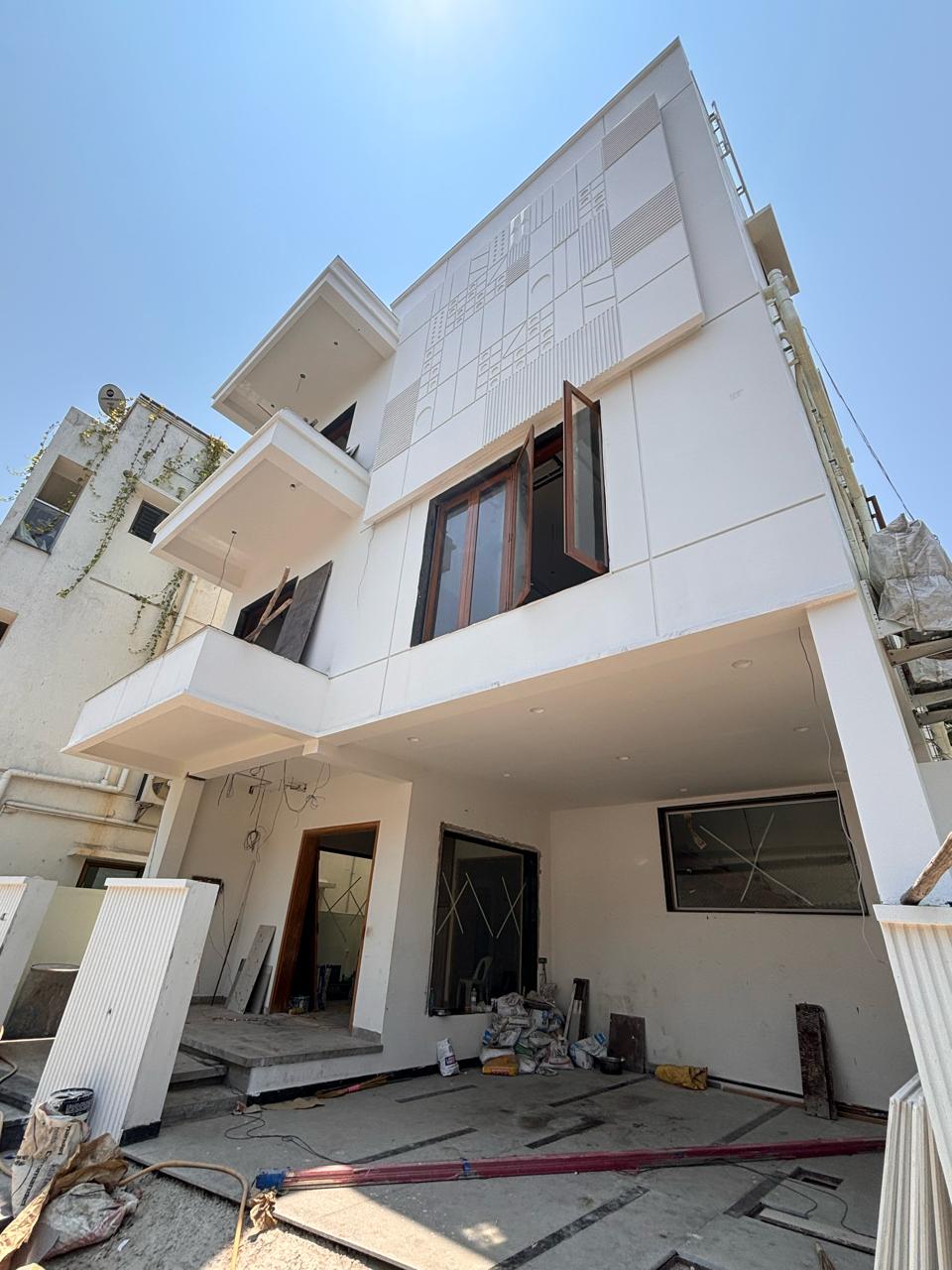 With our Ar. Murali we were able to bring the clients vision to reality with Ground floor Consisting of Waiting area, Foyer, Formal Living Cum Home theatre with powder room Utility roomFirst floor consists of a Master Bedroom along with Toilet ,Kitchen, Dining &Family Living with Pooja room &LoungeSecond floor consists of 2 bedrooms with attached Toilet , Walk in Wardrobe &Open Terrace