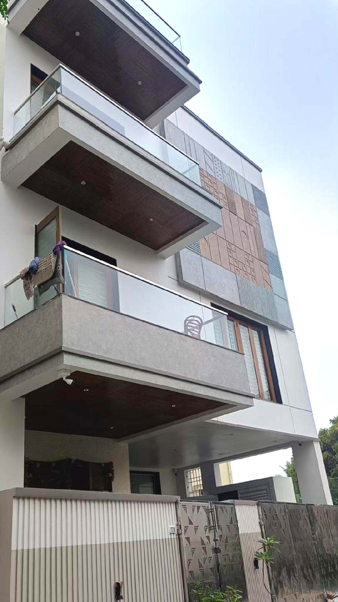 A modern residence nestled away from the maid roads designed to perfection with metal screens.