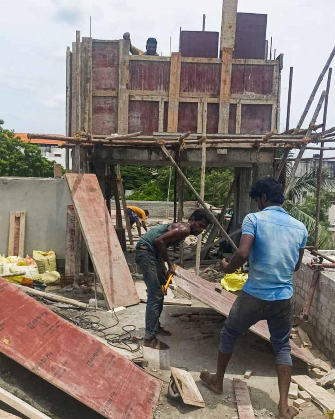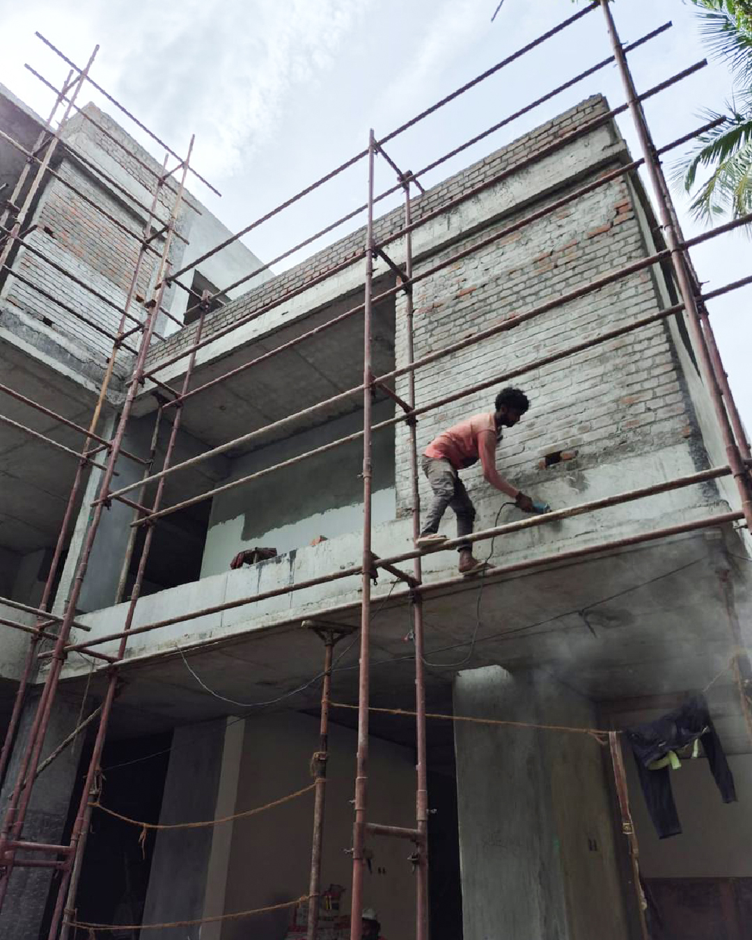 The client required the construction of a Stilt + 2 residential building with ample living space, open balconies, and modern structural elements.