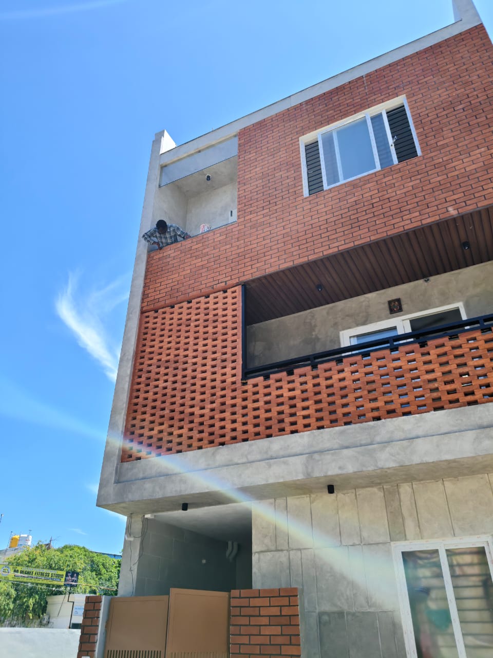 The G+2 residence is designed as a 2BHK building with a modern brick-and-concrete façade. The balconies stand out as key highlights, adding openness and character to the elevation. The spaces are well segregated, with the ground floor planned for rental use, while the first and second floors are dedicated for the owner’s living. This thoughtful design ensures both functionality and a unique architectural identity.