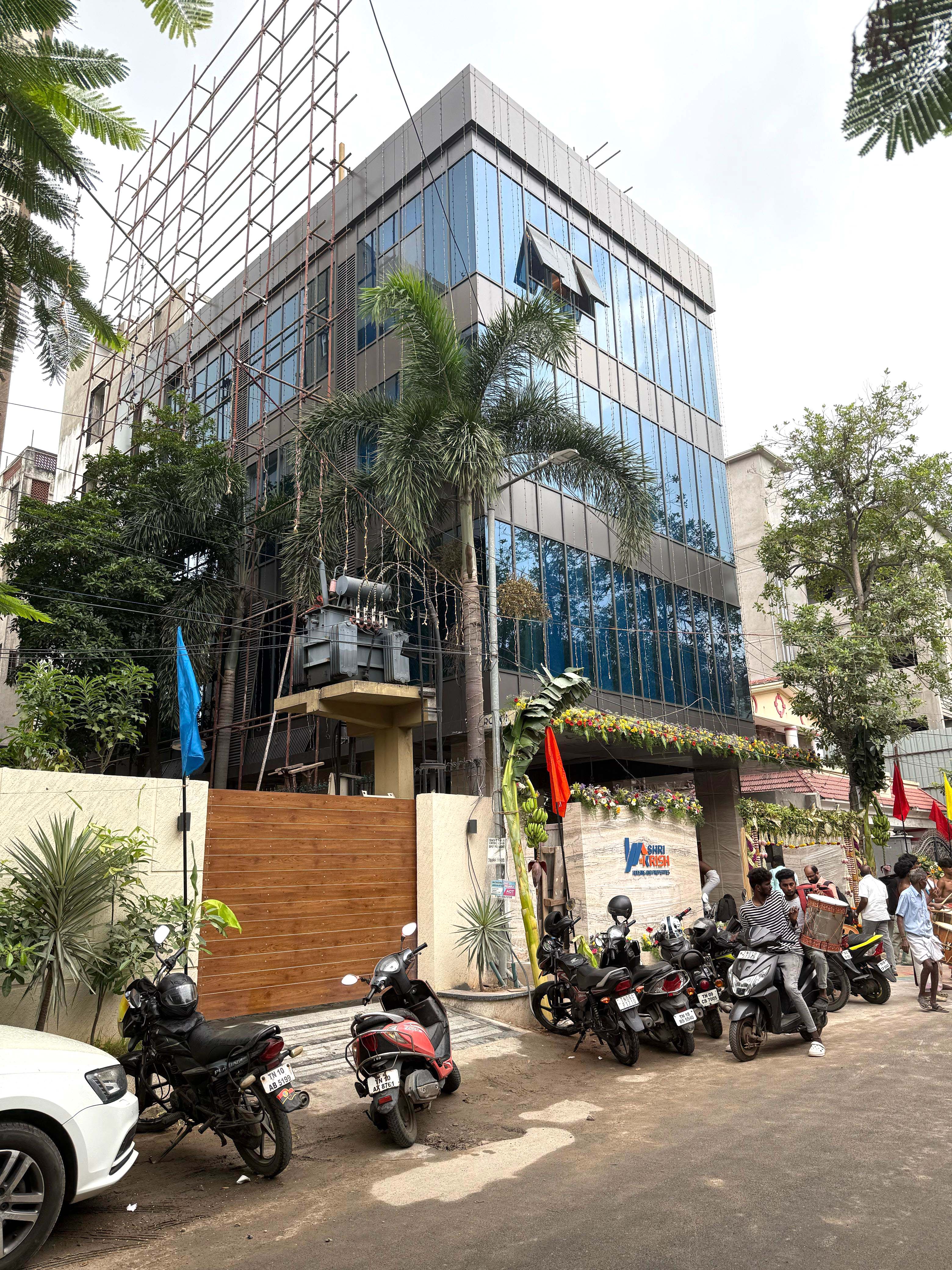 This modern commercial building serves as the corporate office for Shri Krish Housing and Properties, reflecting their growth and professional identity.
