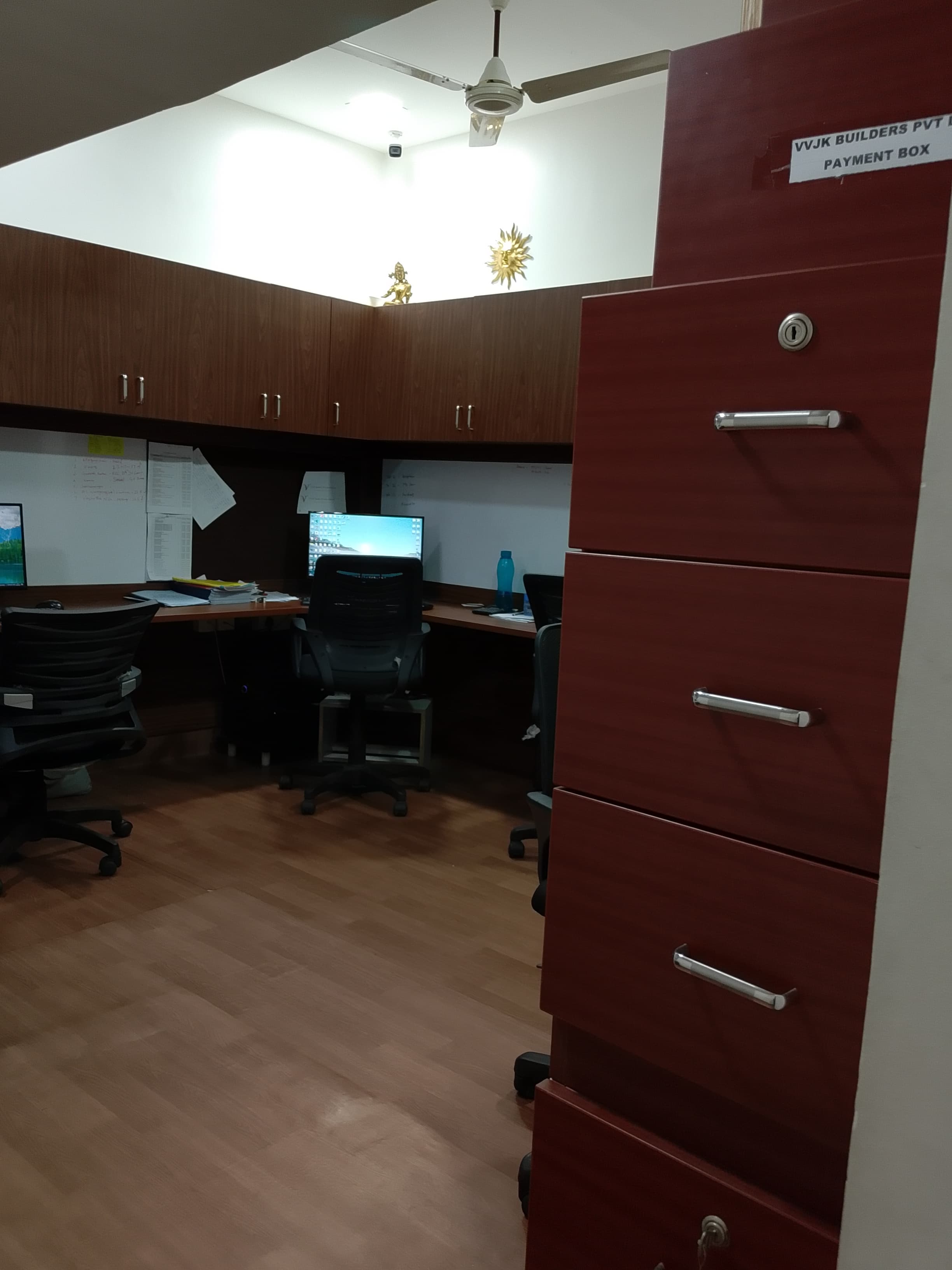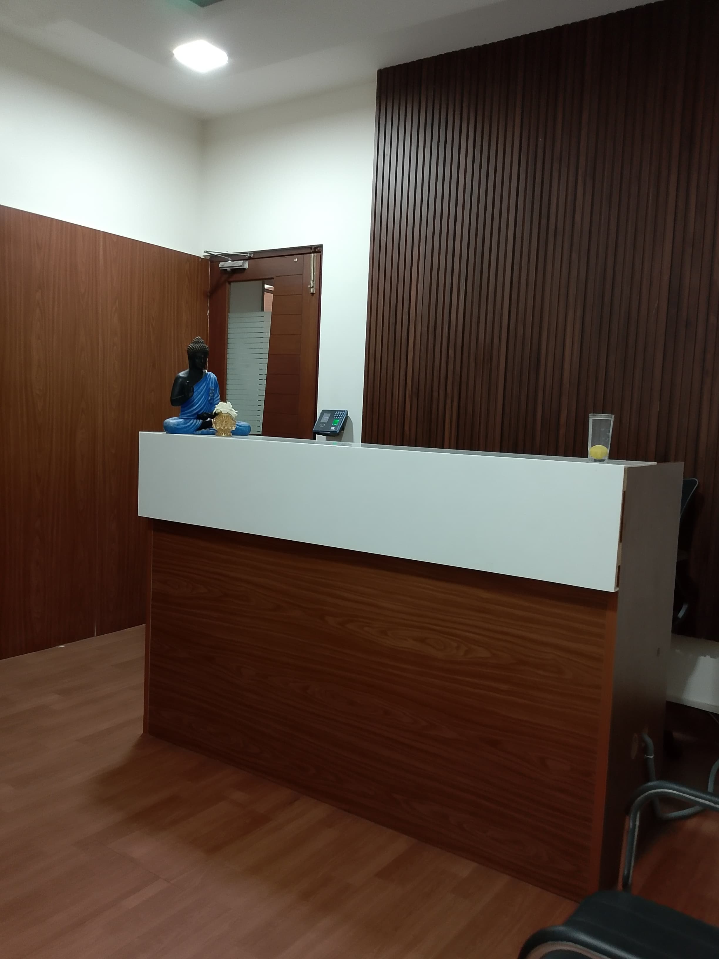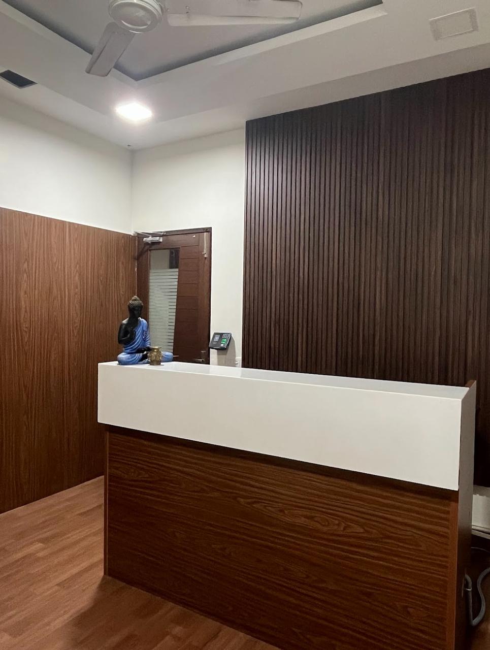 The completed office interiors showcase a professional, practical, and visually pleasing design. Each space is planned for maximum efficiency, featuring sturdy furniture and a unified wood-toned style that adds warmth and elegance. Workstations are set up ergonomically for comfort and productivity, with plenty of storage and neatly managed wiring for a tidy environment. The reception area stands out with a sleek, modern counter and stylish accent wall. Executive cabins are crafted with premium materials, built-in display units, and well-planned lighting for a refined corporate look. Overall, the project delivers a well-finished, ready-to-use office that combines functionality with style.