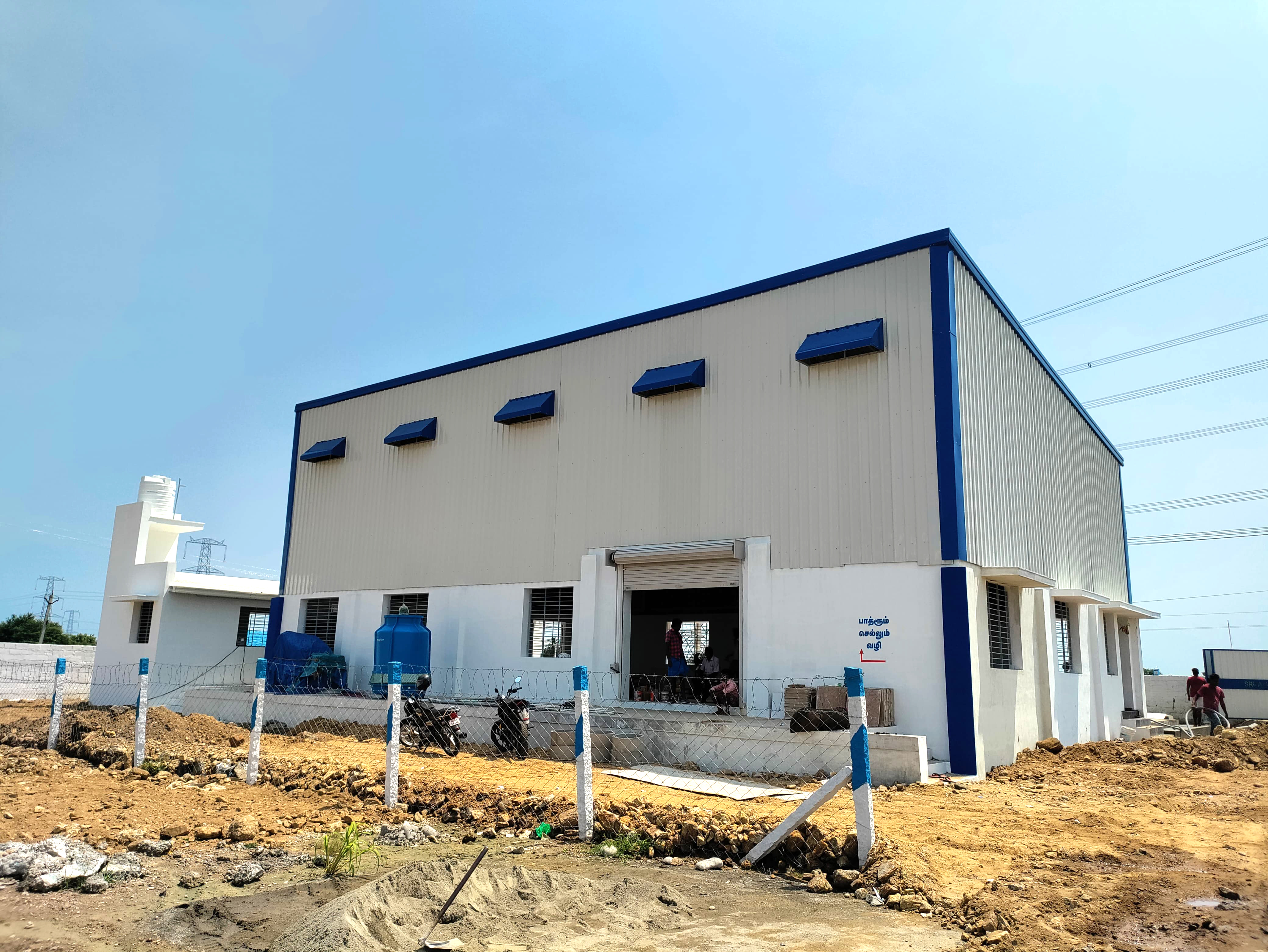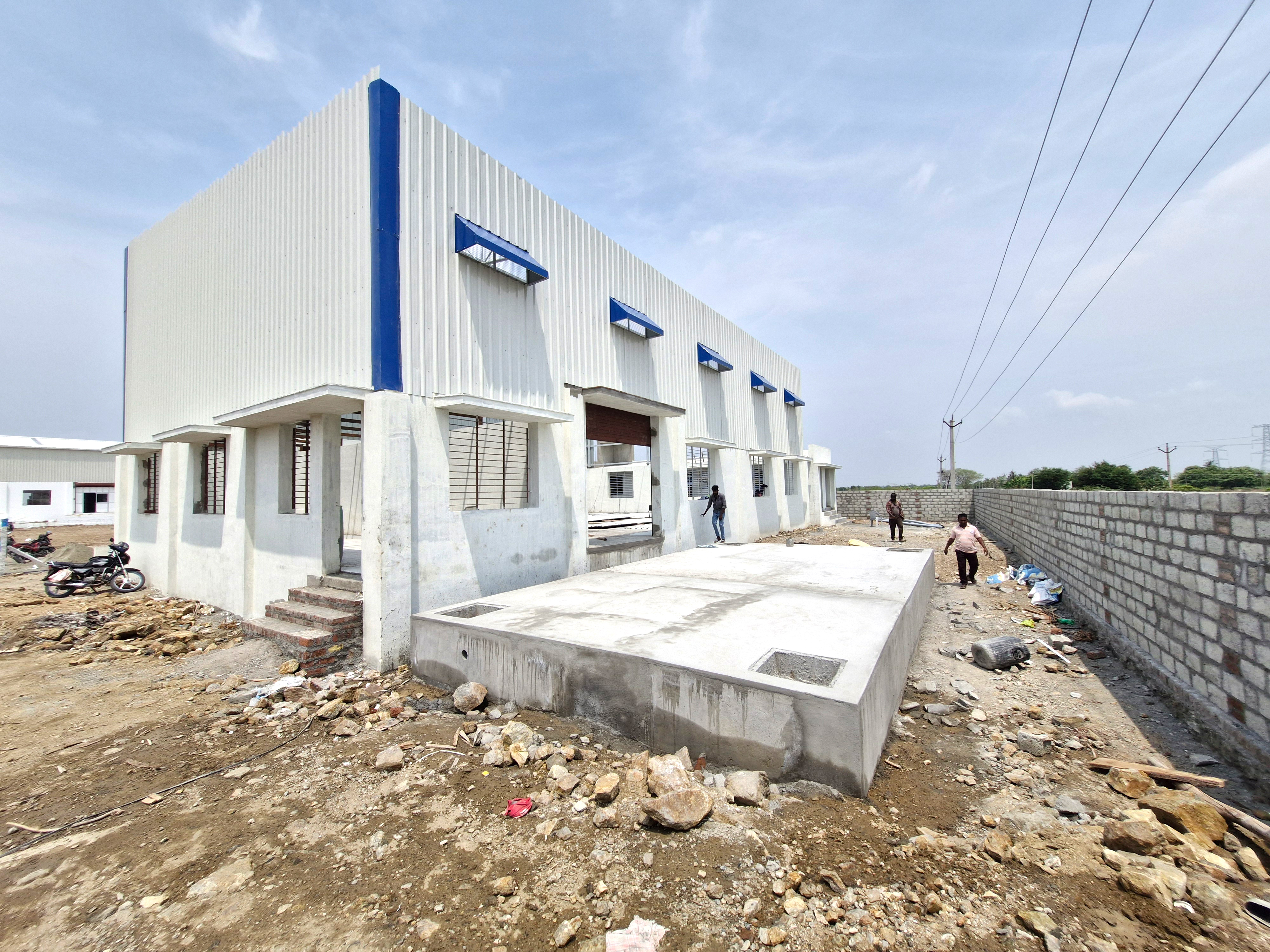 The construction of the Yuva Aqua Bottling Plant was executed successfully using a pre-engineered building (PEB) structure, ensuring speed and strength. The facility includes elevated platforms for loading/unloading, well-ventilated workspaces, and clearly demarcated entry points. High-grade materials were used for both structural durability and hygienic compliance. The project was completed on time, aligned with industrial standards, and ready for operational setup and equipment installation.